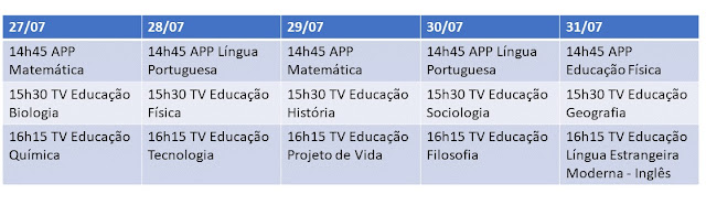 Atividade de tecnologia e Inovação- 27 a 31 de julho 2020.